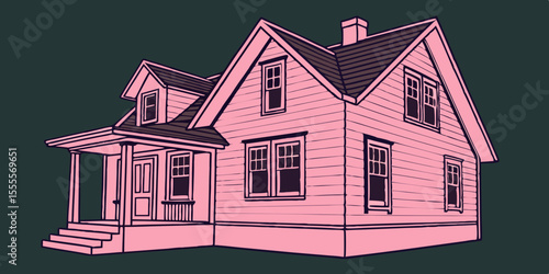 3D rendering picture of a nice pink house, used for ads about buying and selling homes, safety, and building houses in dark green background vector illustration.