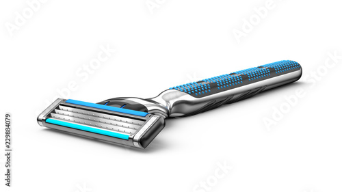beard, black, blade, blue, closeup, cosmetic, detail, device, equipment, facial, grooming, hygiene, lay, lifestyle, male, man, metal, nobody, object, personal, plastic, razor, render, routine, salon, sharp, shaver, stylish, traditional, trimming, white background