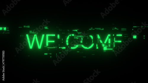 3D rendering welcome text with screen effects of technological glitches