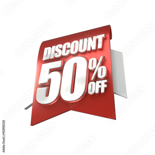 3d sales red and white discount price tag for composition 50 percent, amazing for product promotion
