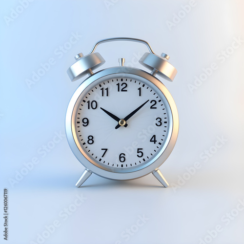 3d silver clock icon, 3d render, extra detailed, front view, light gray gradient background. Generative AI