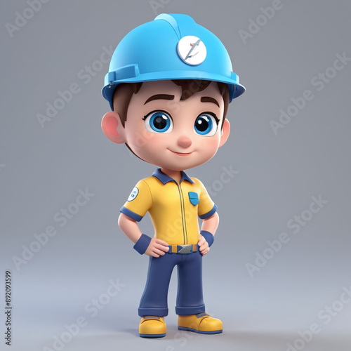 3D simple worker character wear worker helmet and work shirt