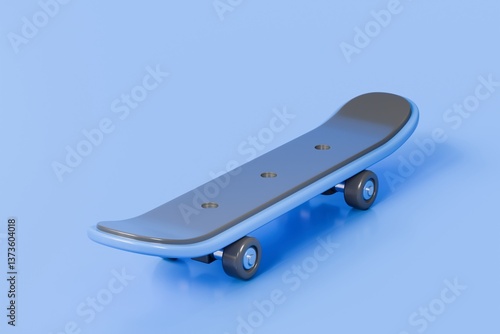 3d Skateboard icon. Youth lifestyle. Advertising template with floating realistic sport extreme equipment objects. Minimal cartoon realistic blue Skateboard isolated on blue background. 3d render.