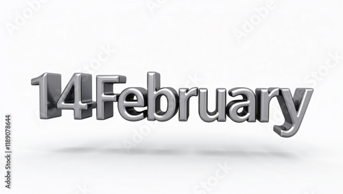 3D text "14 February" Valentine's Day, Valentine's Day Typography, Romantic 3D Art for February 14th Celebration