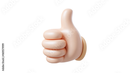 3D thumbs up hand gesture icon in cartoon plastic style, friendly and expressive, isolated on transparent background