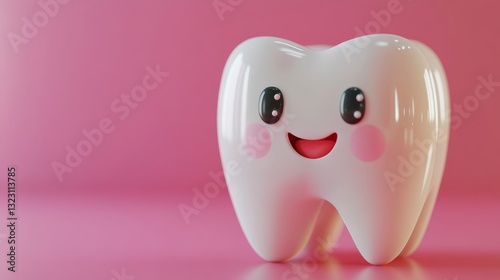 3d white tooth cartoon on copy space background. Professional dental hygiene concept