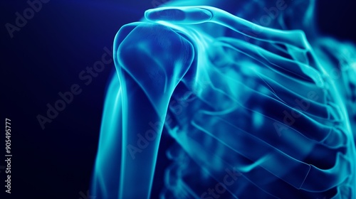 three-dimensional, x-ray, shoulder, rib, cage, bone, anatomy, medicals, imaging, blue, glowing, structure, detailed, health care, skeleton, radiology, internal, diagnostic, technology, skeletal, system, human, body, rib, orthopedics, science, medicine, visualisation, scan
