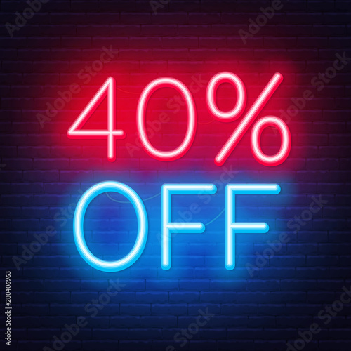 40, percent, off, 40, sale, neon, poster, vector, price, holiday, signs, bright, shop, card, banner, discount, retro, concept, typography, electric, glow, offer, vintage, advertising, light, style, background, promotion, illustration, blue, design, glowing, shiny, symbol, business, icon, label, marketing, night, special, store, coupon, vouchers, red