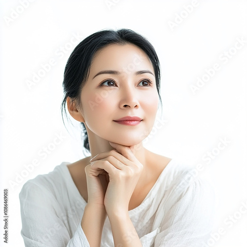 40-45 year old Beauty Japanese Asian women spa skin healthy on 100% isolate white background.