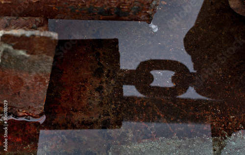 44mm Ship studless link anchor heavy Chain. close-up views. Old worn out Texture and background.