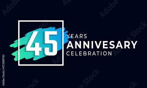 45 Year Anniversary Celebration with Blue Brush and Square Symbol. Happy Anniversary Greeting Celebrates Event Isolated on Black Background