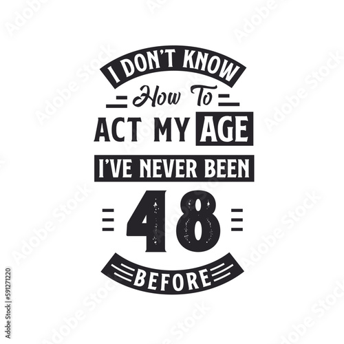 48th birthday Celebration Tshirt design. I dont't know how to act my Age, I've never been 48 Before.