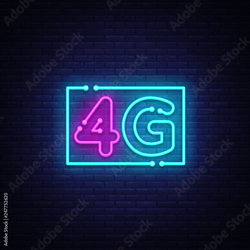 4G new wireless internet wifi connection neon sign vector. 4G Design template neon sign, light banner, neon signboard, nightly bright advertising, light inscription. Vector illustration