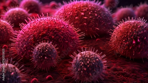 virus, germ, microbe, infection, disease, mobile phone, biology, medicals, science, microscopic, macro, closeup, pink, magenta, red, sphere, spike, protein, membrane, infectious, outbreak, epidemic, pandemic, health care, microbiology, research, glowing, vibrant, threat, multiplication, growth, mutation, digital, render, hi-res, visualisation, molecular, host, organism, fluid, tissue, abstract, cancer, clone, genetic