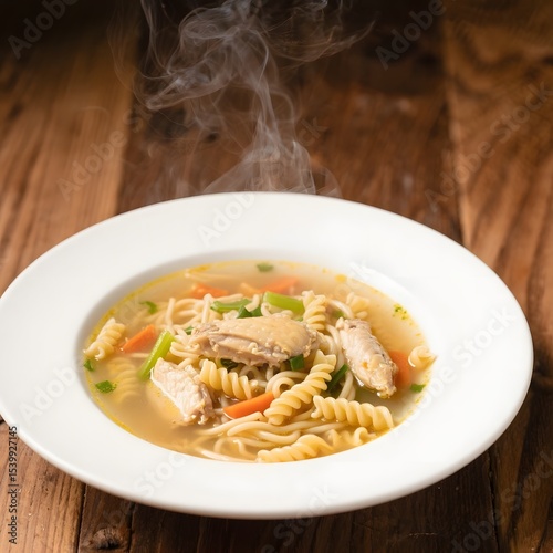 4k high quality Ai generative HD art photo realistic store business menu sell selling market restaurant western food eat cooking best chicken noodle soup vegetable umami rotini spaghetti pasta bowl