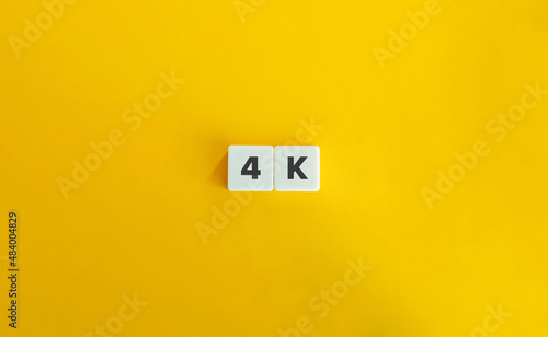 4K Resolution Banner. Block letters on bright orange background. Minimal aesthetics.