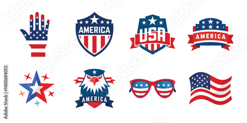 july, vector, american, independence, flag, star, stripes, patriotic, holiday, freedom, us, fireworks, celebration, design, illustration, art, graphic, red, white, blue, nation, history, culture, tradition, shield, decoration, banner, poster, summer, festival, event, print, digital, creative, clip, icon, symbol, logotype, eagle, hat, sunglasses