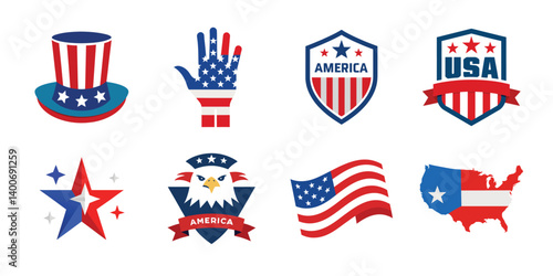 4th of July vector elements set. Collection of American Independence Day vector illustrations on white background