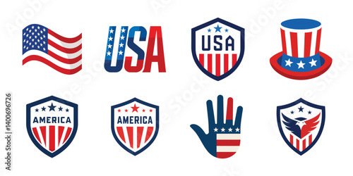 4th of July vector elements set. Collection of American Independence Day vector illustrations on white background
