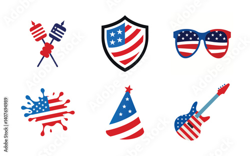 july, vector, set, american, independence, day, element, white, background, flag, star, stripes, patriotic, celebration, freedom, fireworks, holiday, nation, us, united, state, design, illustration, graphic, art, red, blue, theme, banner, party, decoration, symbol, tradition, culture, history, liberty, honour, pride