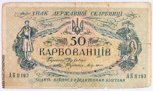 50 karbovanets of the Ukrainian People's Republic. Paper money of Ukraine.