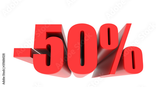 -50 percent off discount promotion sale. 3D Render. 3D-Illustration percent discount collection for your unique selling poster, banner ads. Christmas, Xmas sale and more