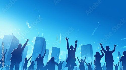 animation, animation, illustration, illustration, material, clean, landscape, lovely, pretty, art, artistic, silhouette, people, group, happiness, team, enjoyment, businessman, man, woman, man, woman, success, chance, happiness, happy, achievement, aim, work, business, teamwork, communication, pose, salaried employee, blue skies, sun, black, shadow, cloud, effort, celebration, hand, fun