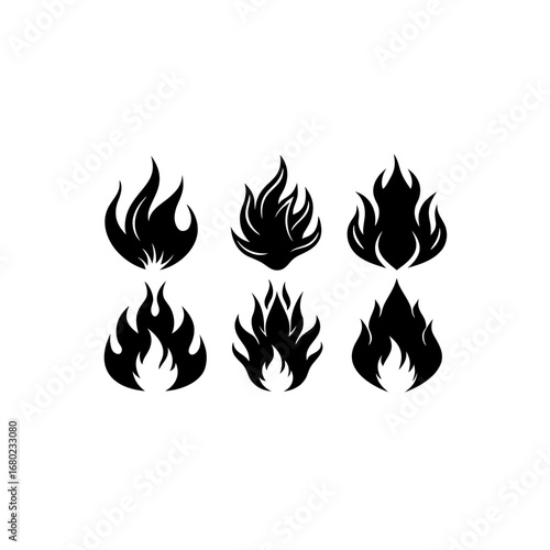6, different, fire, flames, ornament, silhouette, vector, icon, symbol, hot, illustration, signs, burn, design, heat, set, art, logotype, danger, burning, element, orange, water, campfire, balefire, decoration, flames, blaze, flammable