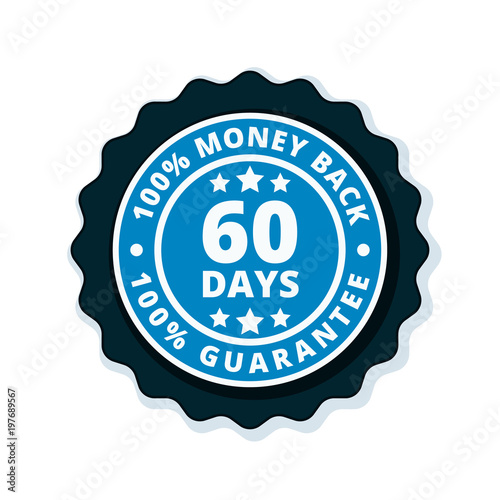 vector, 60, guarantee, money, back, 60, day, icon, label, satisfaction, guarantee, badge, seal, day, signs, sticker, certificate, symbol, stamp, illustration, business, client, quality, sale, service, shop, retail, approval, banner, assurance, advantage, 100, emblem, product, tags, promotion, free, insurance, percent, consumer, risk, market, offer, best, medal, insignia, star, element, commitment