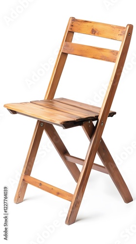 66. A wooden folding chair with a clean, minimalist design, isolated on a white background