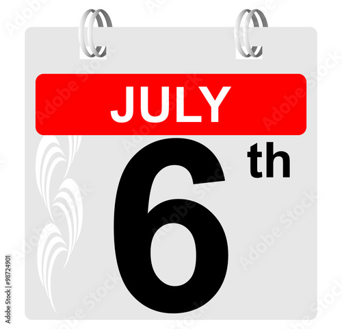 6, july, calendar, design, icon, time, date, month, day, year, schedule, deadline, agenda, appointment, meeting, plan, reminder, holiday, party, annual, event, diary, business, organise, office, celebrate, red, white, black, binder, element, graphic, illustration, note, number, object, paper, signs, symbol, vector, web, computer, contact, card, cyberspace, app, mobile