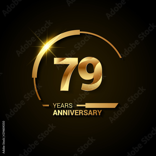 79 Years Anniversary Celebration Logotype. Golden Elegant Vector Illustration with Half Circle, Isolated on Black Background can be use for Celebration, Invitation, and Greeting card
