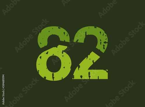 82 vector number made of grungy, grunge texture. Rubber stamp imprint style. For logo, brand label, poster, design elements etc.