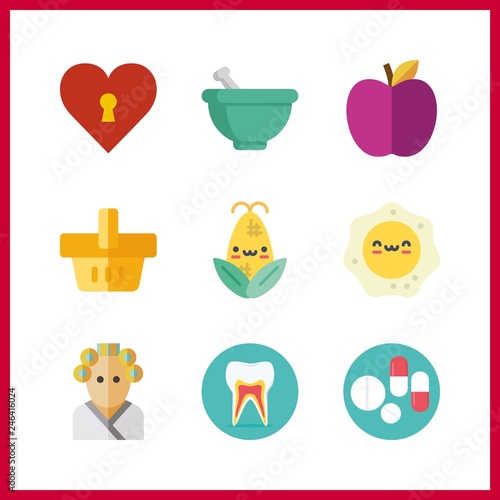 9 healthy icon. Vector illustration healthy set. mortar and corn icons for healthy works