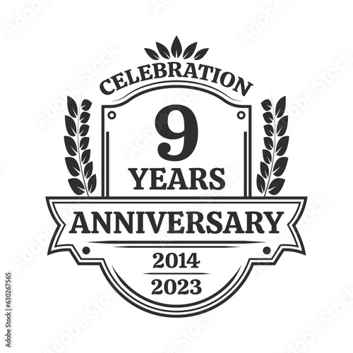 anniversary, logotype, 9, icon, birthday, year, vector, business, vintage, banner, design, shield, number, background, ribbon, jubilee, badge, wedding, seal, age, illustration, celebration, label, concept, happy, celebrate, company, 9, invitation, corporate, graduation, isolated, certificate, th, party, template, congratulation, success, guarantee, crest, stamp, client, celebrate, laurel, symbol, emblem, retro, luxury