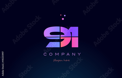 91 ninety one pink magenta purple number digit numeral logo icon vector