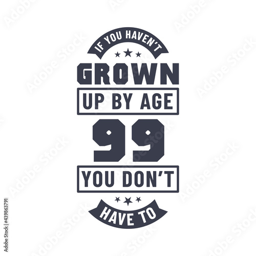 99 years birthday celebration quotes lettering, If you haven't grown up by age 99 you don't have to