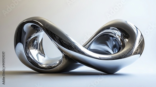 abstract, sculpture, smooth, curve, metallic, texture, reflecting, light, creating, sense, depth, dimension
