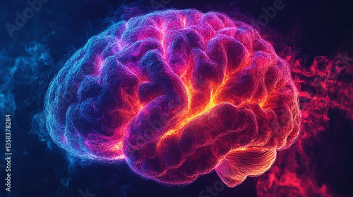 A 3D brain radiating glowing colors, symbolizing cognitive energy and creativity. The vibrant hues represent enlightenment and the power of intellect in a modern, dynamic form.