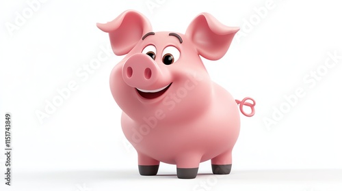A 3D cartoon pig with a happy expression, isolated on a white background.