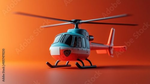 A 3D model of a toy helicopter with a blank label on the tail rotor.