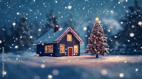 christmas, house, tree, snowflake, festive, winter, holiday, decoration, three-dimensional, cartoon, atmosphere, blue, snow, celebration, magic, night, happy, winter landscape, gift, ornament, light, new year, christmas, winter scene, family, joyful, home, cheerful, colourful, bright, simple, cosy, seasonal, winter storm, holiday spirit, happy holiday