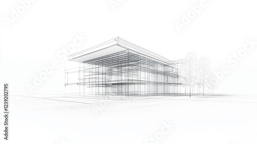 A 3D vector rendering of a buildings wireframe structure, showcasing a conceptual architectural blueprint