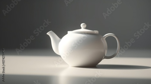 A 3D-rendered plain white ceramic teapot, placed on a white surface with soft lighting and minimal shadows.