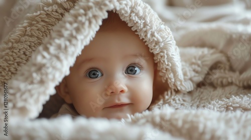 baby, girl, eye, blue, cute, adorable, children, infant, towel, soft, childhood, newborn, toddler, love, family, precious, beautiful, healthy, happy, care, new life, joy, pure