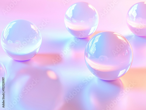 a background with pastel-colored, glossy orbs floating above a smooth surface