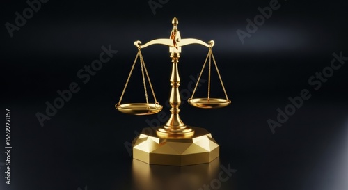 A balanced judgment is represented by beautiful golden scales of justice on a stylish faceted base, rendered in a 3D illustration against a dark, clean background.
