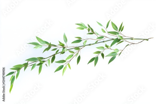 A bamboo branch with bright green leaves and a segmented stalk isolated on a white background ideal for highlighting natural beauty and minimalist botanical designs.