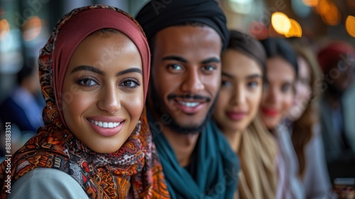 A banner highlights the diversity of a multiethnic team of business people, smiling and presenting in a meeting
