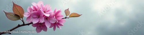 A bare and withered hydrangea branch against a gray sky, weathered, gray, cloud